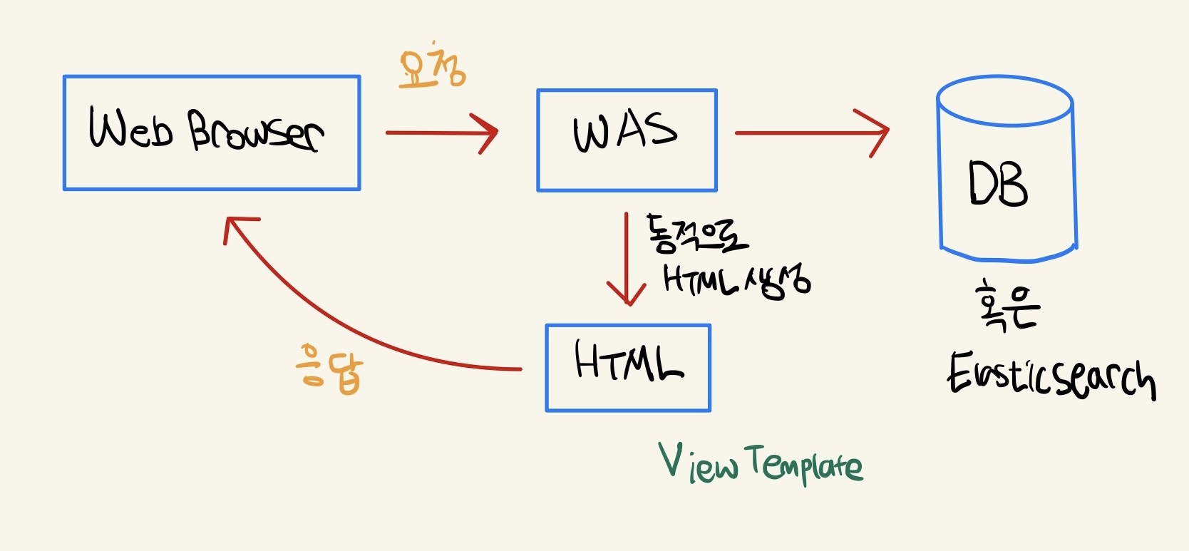- HTML 최종 결과를 서버에서 만들어 웹 브라우저에 전달