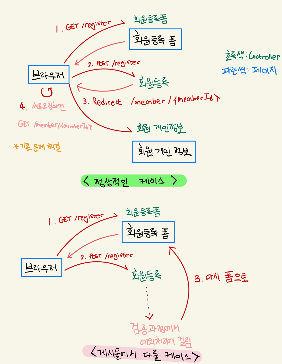게시글에서 다룰 케이스는 아래와 같습니다. (위에는 PRG 패턴 정상 케이스, 아래는 게시글에서 다룰 케이스)