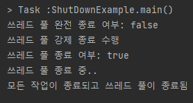 - ExecutorService는 작업 제출부터 작업 실행, 작업 완료, 쓰레드 풀 종료, 자원 회수까지의 과정을 포함하는 라이프 사이클을 가지고 있음