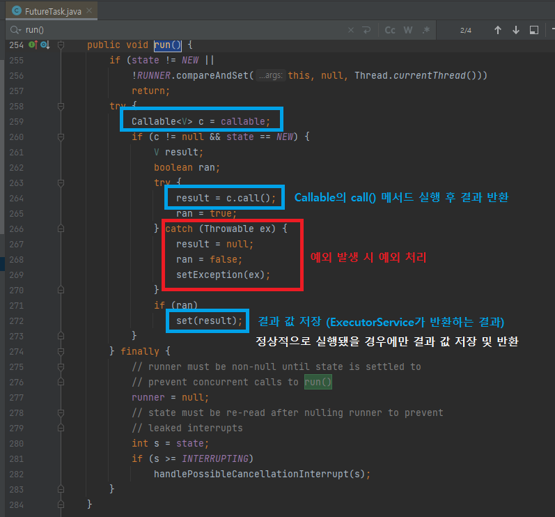 - ExecutorService 내부적으로 Callable을 실행하여 결과를 FutureTask에 저장