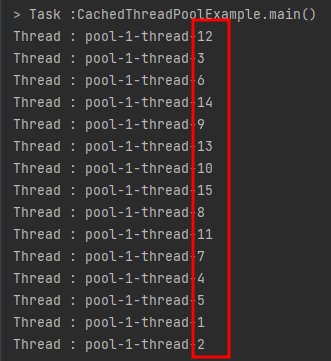 - 쓰레드의 개수를 제한하지 않으며 작업 요청이 많을 때는 쓰레드 수가 증가하고 작업 요청이 감소하면 유휴 상태의 쓰레드가 종료되어 쓰레드 풀의 쓰레드 개수 조절 (auto-scaling)