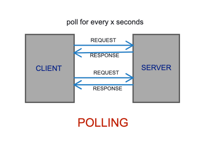 - 클라이언트가 일정한 시간 간격으로 서버에 요청을 보내어, 새로운 데이터가 있는지 확인하는 방식